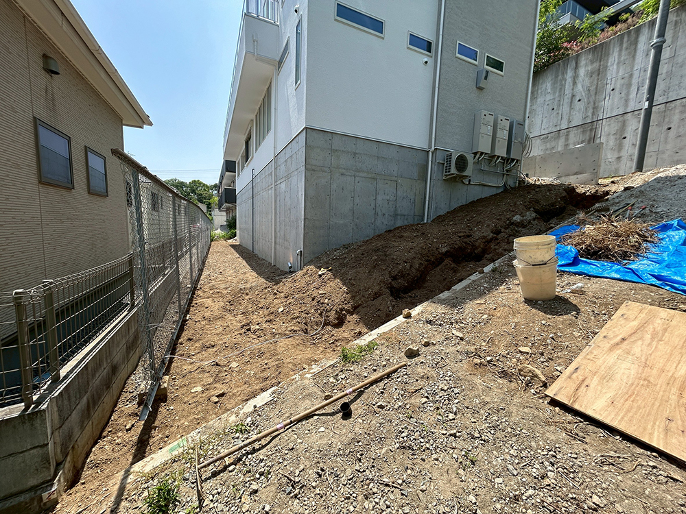 施工前の様子。建物横側から。