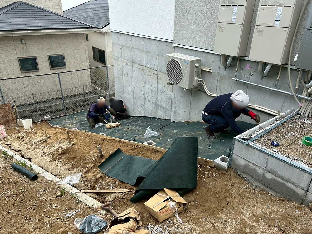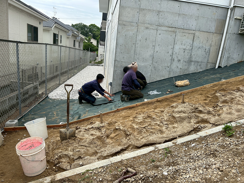 そこで今回は、雑草対策として防草シートを丁寧に敷設。