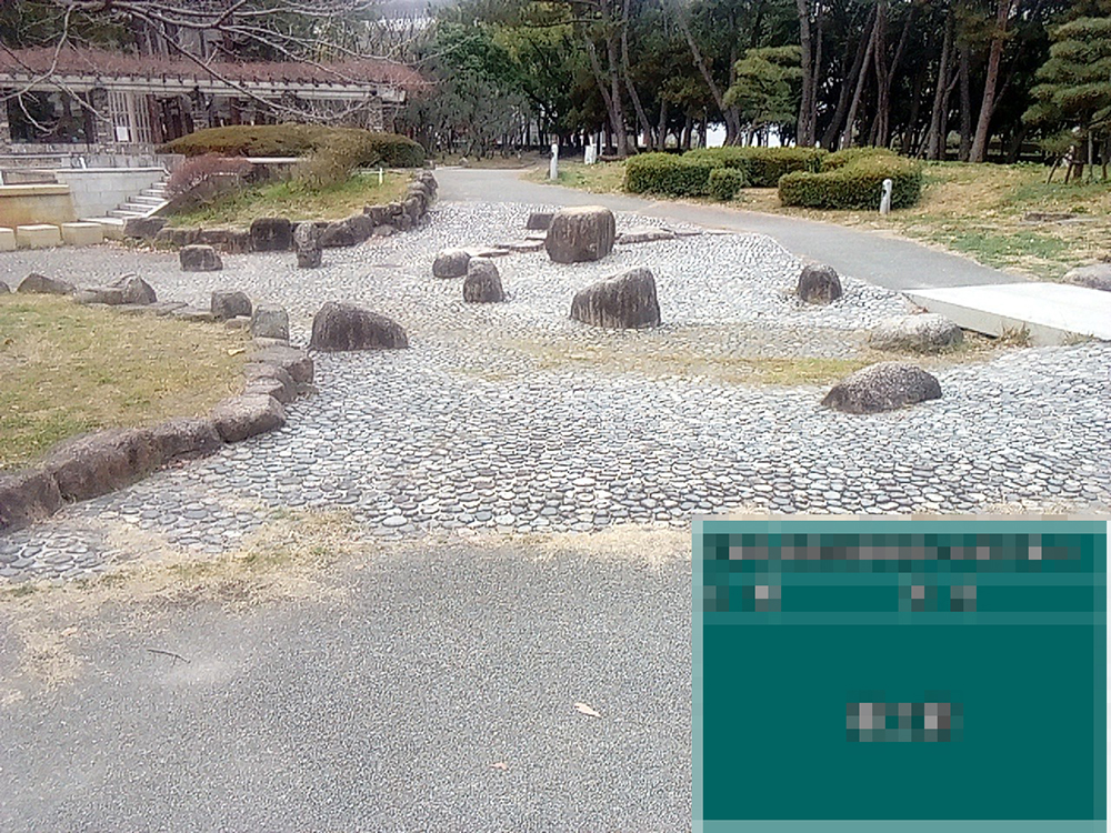 以前は噴水から水が流れ、日本庭園の州浜のようになっていのですが、最近は水が流れておらず自然石だけが残りました。