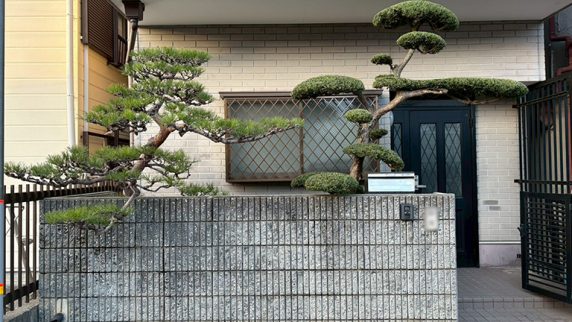 大阪府豊中市 個人邸 門担ぎのクロマツ(黒松)が印象的な邸宅にて植木の剪定