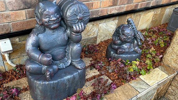 大阪府堺市 個人邸 玄関横の植栽枡の植物入れ替え、村秀鬼瓦工房の鬼の置物を設置
