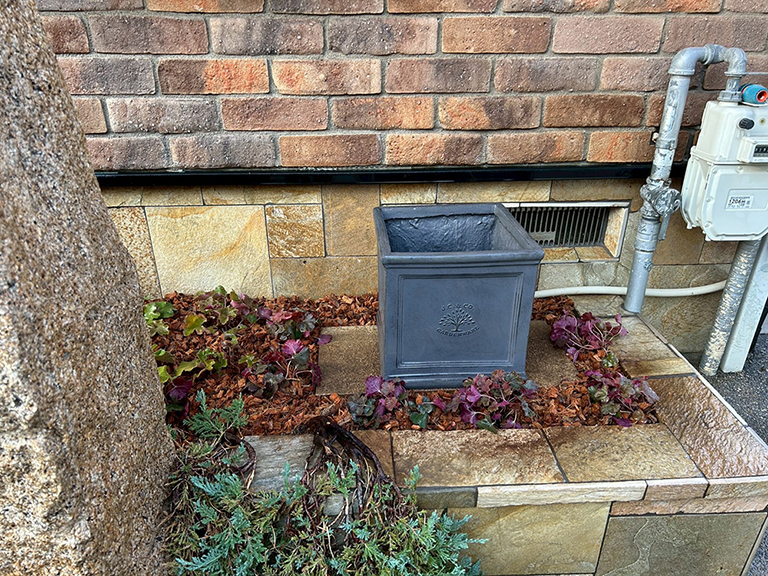 大阪府堺市の個人邸にて、玄関横にある植栽枡(花壇)の植物入れ替えとレイアウト変更を行いました。