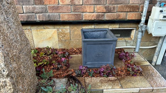 外構工事 大阪府堺市 個人邸 玄関横の植栽枡の植物入れ替え、村秀鬼瓦工房の鬼の置物を設置